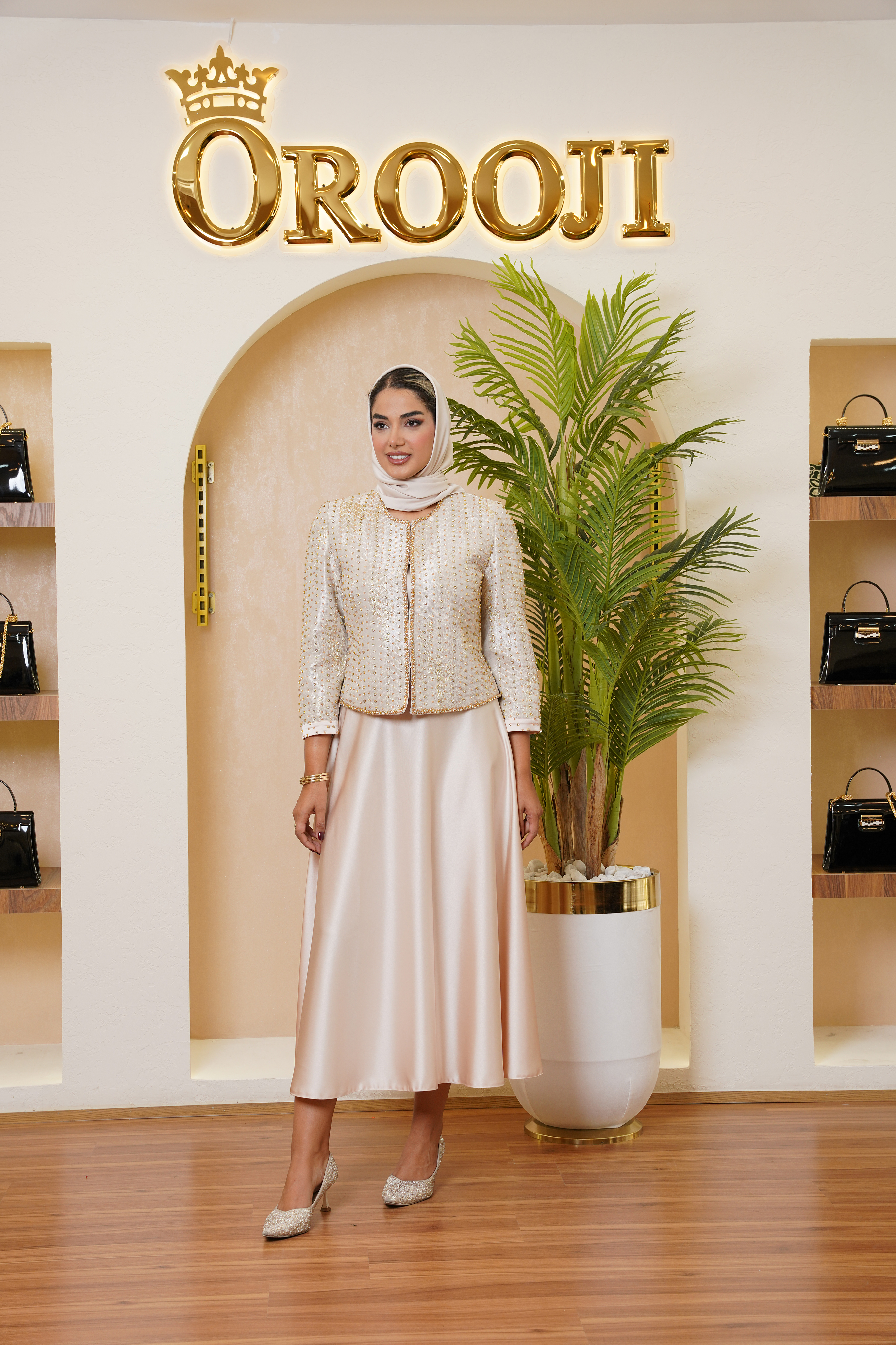 کت دامن هفترنگ برند عروجی جلوهای از ظرافت و شکوه زنانه است.