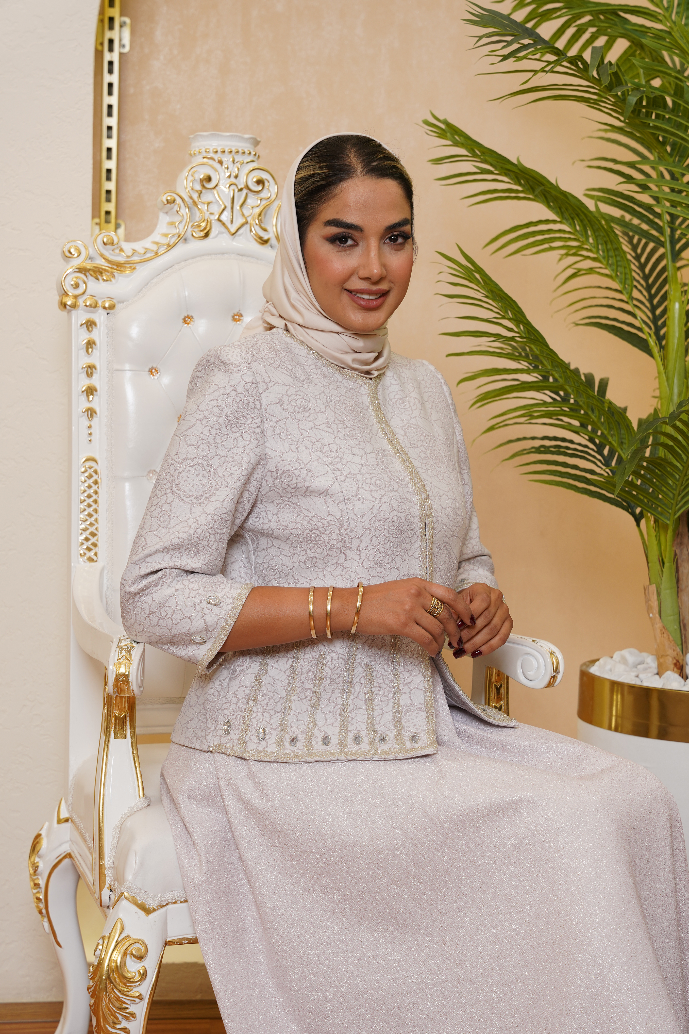 سه‌ربع (¾ length) با سرآستین کارشده سنگ و نقوش طلایی