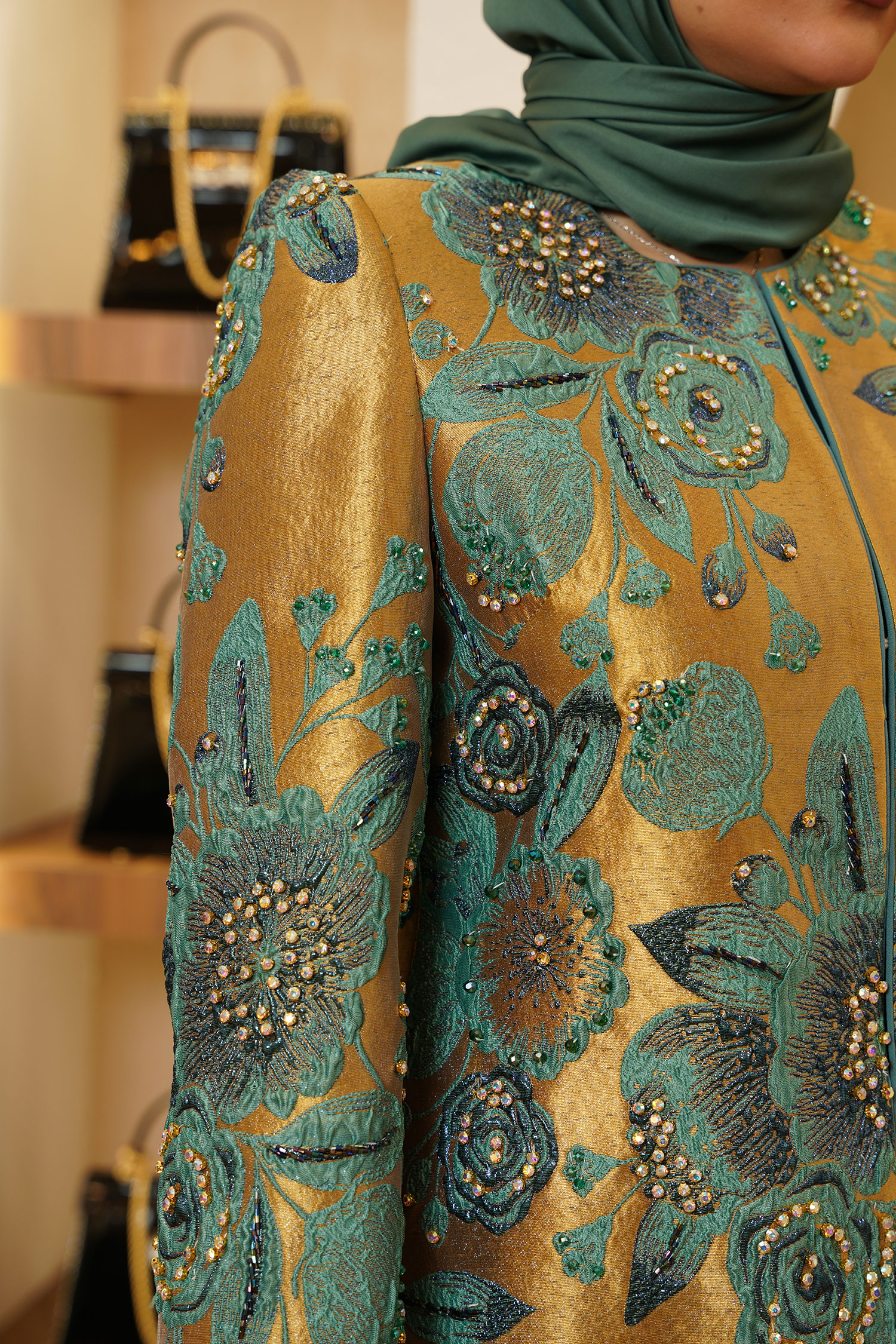 مانتو «هانا» انتخابی چشمگیر و مجلسی برای استایلهای مزونی است؛ طراحی آن با تکیه بر پارچهی ژاکارد ممتاز و پرداختهای ظریفِ دستدوز، جلوهای لوکس و متفاوت میسازد. تزیینات سنگدوزی و کریستالکاری، درخشش کنترلشدهای به کار میدهد و فیوزینگِ حرارتیِ دقیق، ایستایی و فرم حرفهای مانتو را تثبیت میکند. این مدل در دو طیف رنگیِ طلایی و کرم ارائه شده و با قد ۸۰ و آستین ۶۰، روی تن خوشفرم و متعادل مینشیند.