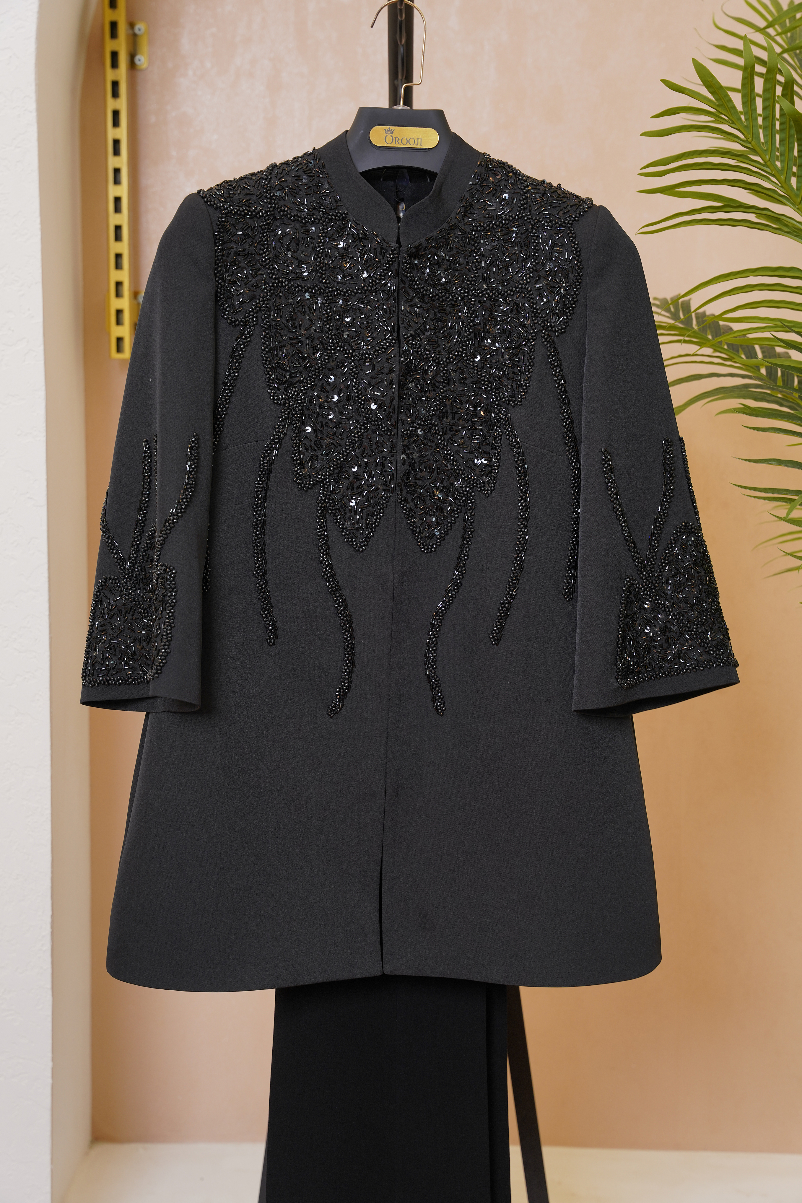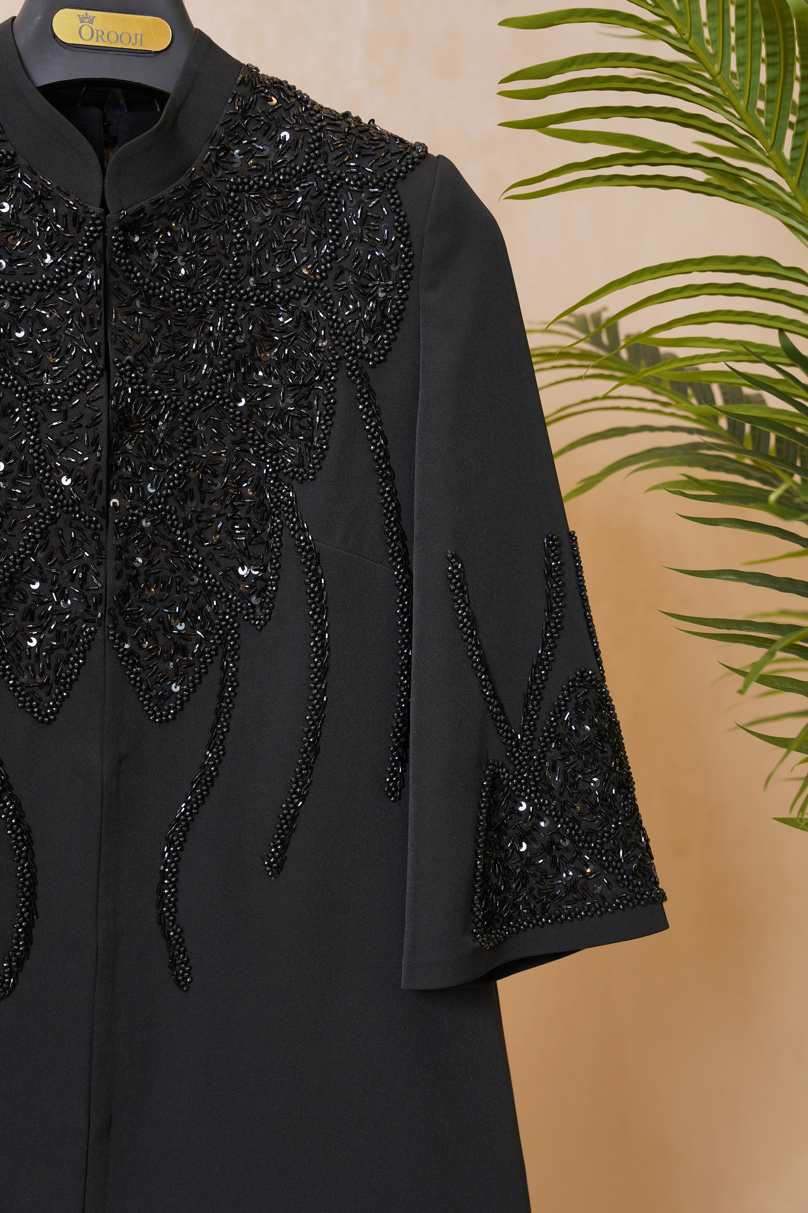 سنگ مشکی براق، کار شده روی سرشانه، یقه و آستین
