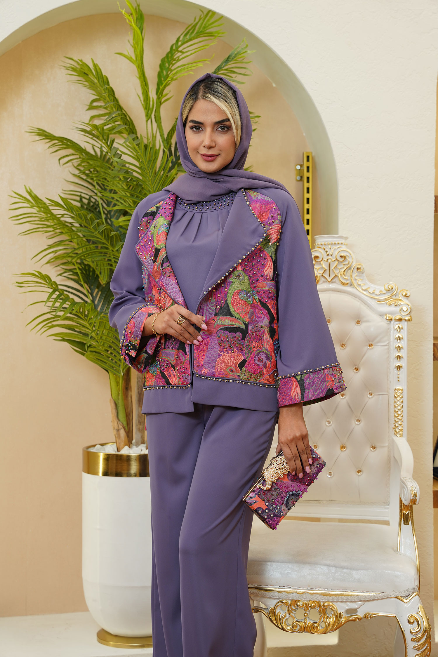 کت کوتاه مزونی، جلو باز با لبه‌دوزی و قاب جواهردوزی