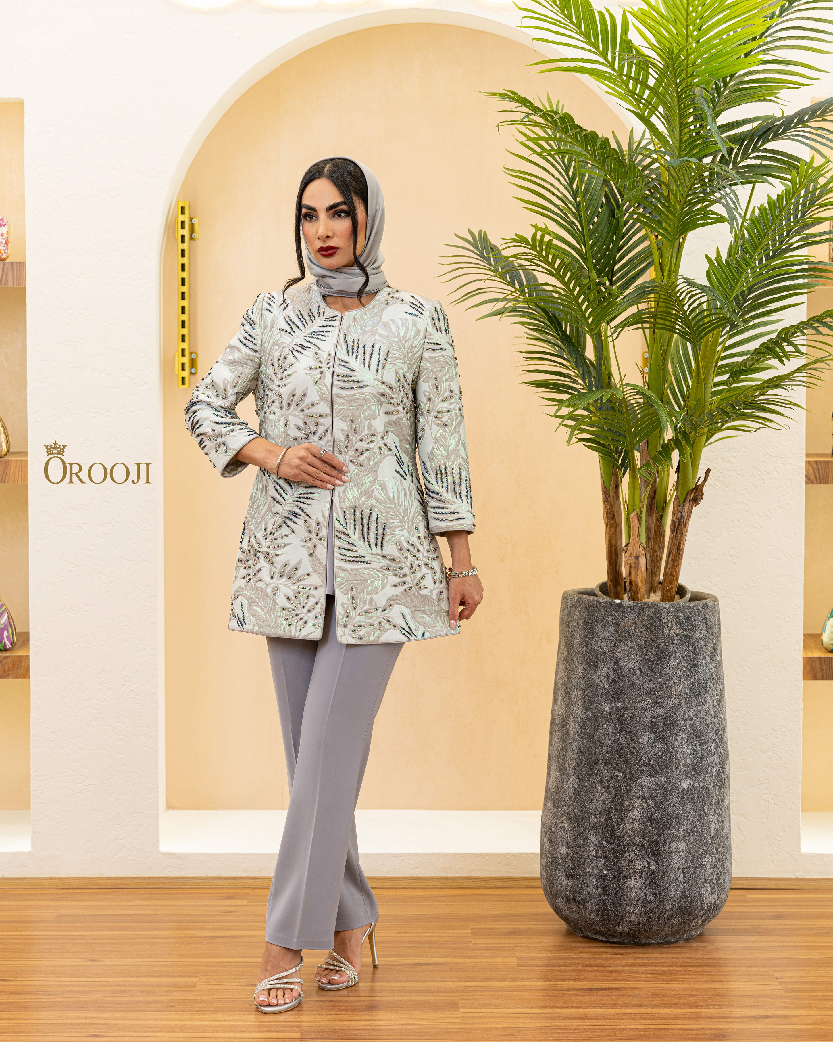 ترکیب پارچه ژاکارد ترک با سنگدوزیهای درخشان اورجینال، این مانتو را به انتخابی ایدهآل برای استایلهای رسمی و خاص تبدیل کرده است.
