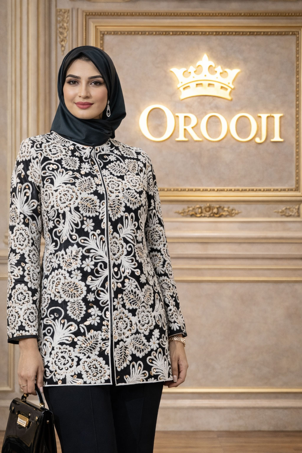 برای یک استایل شیک و مجلسی، مانتو نیو مارگاریتا را با شلوار مشکی راسته، کیف دستی براق و کفش پاشنه‌بلند مشکی یا سفید ست کنید. استفاده از شال ساده و اکسسوری‌های مینیمال نقره‌ای یا کریستالی، جلوه سنگدوزی‌ها را برجسته‌تر کرده و استایلی کاملاً لوکس و چشمگیر ایجاد می‌کند.