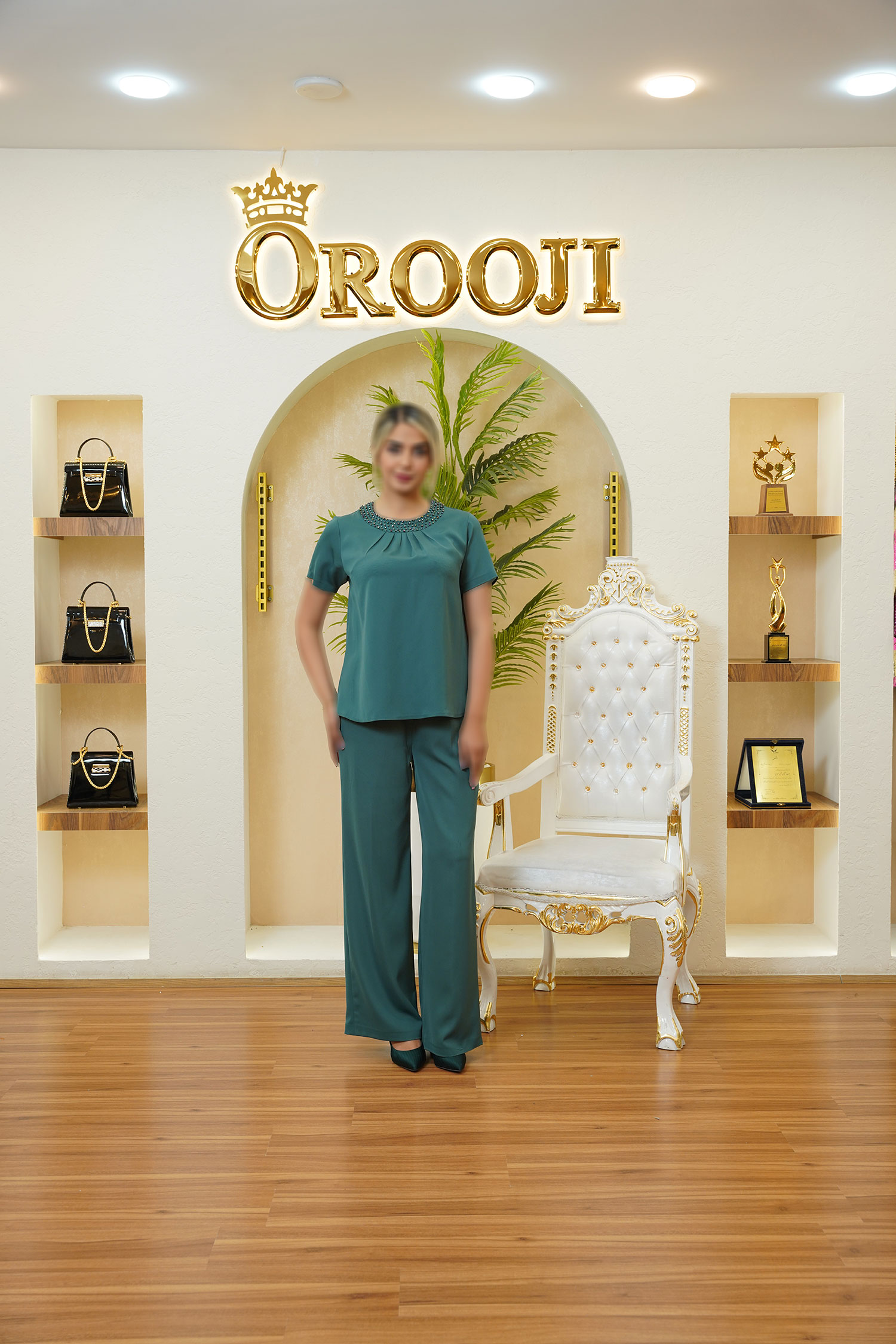 شومیز شلوار ژاکارد «رگلان طوطی» یک ست شیک و چشم‌نواز با طراحی هماهنگ و هویت بصری قوی است که برای استایل‌های خاص و نیمه‌مجلسی انتخابی ایده‌آل محسوب می‌شود. پارچه ژاکارد طرح رگلان طوطی با بافت غنی و رنگ‌بندی هوشمندانه، در دو رنگ طراحی شده و شومیز و شلوار به‌صورت کاملاً ست و یکپارچه با طرح پارچه اجرا شده‌اند. سنگ‌دوزی ظریف و دقیق دور یقه، جلوه‌ای لوکس و زنانه به کار بخشیده و بدون شلوغی، نقطه کانونی طراحی را شکل می‌دهد. قد تاپ ۷۰ سانتی‌متر و قد شلوار ۱۰۵ سانتی‌متر است که تناسب اندام و کشیدگی استایل را به‌خوبی حفظ می‌کند. این ست، ترکیبی از طراحی مدرن، ظرافت اجرایی و کاربردپذیری برای استفاده روزمره شیک یا موقعیت‌های خاص است.