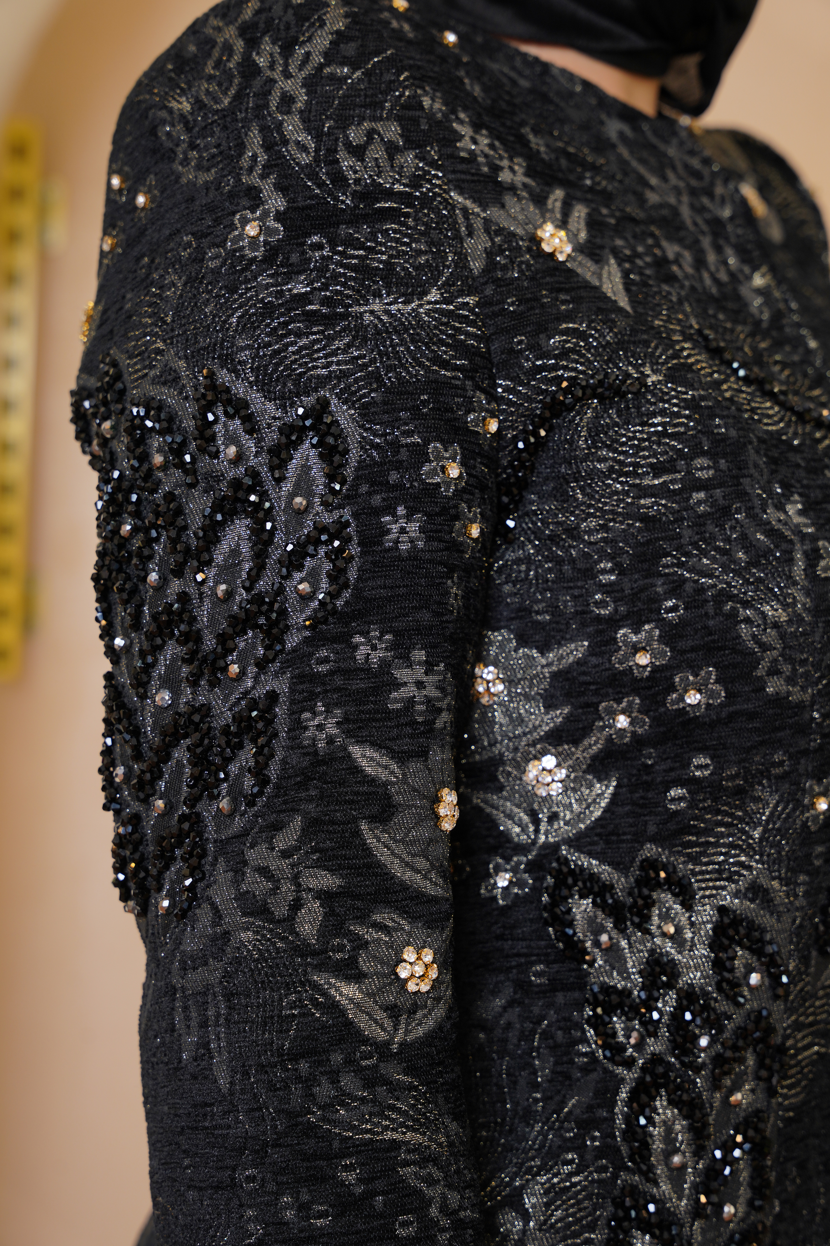 شنل راسپینا از طراحیهای فاخر و متفاوت برند عروجی است؛ تلفیقی از پارچهی ژاکارد لمهدار با سنگدوزیهای دستدوز و درخشش متالیک. این شنل با خطوط ظریف و دوخت خوشفرم خود، یکی از خاصترین انتخابها برای بانوانیست که به دنبال جلوهای رسمی، درعینحال مدرن و چشمگیر هستند. دوخت دقیق و اجرای بینظیر سنگها روی بافت ژاکارد باعث شده نور در زوایای مختلف روی لباس بازی کند و جلوهای خیرهکننده خلق شود.