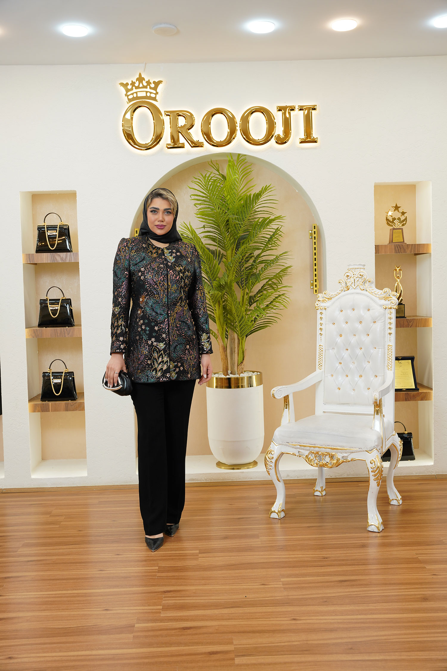 مانتوی طاووس یک انتخاب لوکس و شیک برای خانم‌هایی است که به استایل رسمی و ماندگار علاقه دارند؛ ترکیب ژاکارد ترک با سنگدوزی کریستالی و دوخت مزونی، این مدل را به آیتمی خاص برای مهمانی‌ها و استایل‌های نیمه‌رسمی تبدیل کرده است.